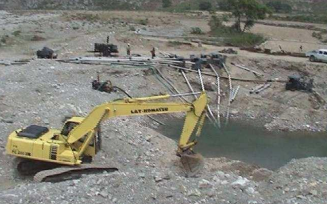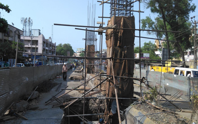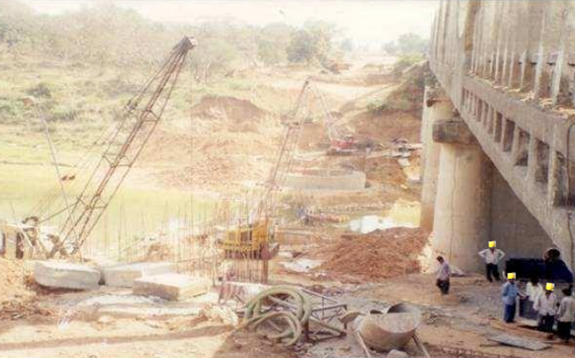 Deep foundation works using well sinking techniques for highway bridge construction.